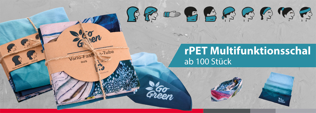 kontinuierlich suchen wir nach Lösungen, Produkte umweltverträglicher zu gestalten. Die erfolgreiche Umstellung erkennen Sie einfach durch das rPET Kennzeichen oder an dem Go Green Symbol.